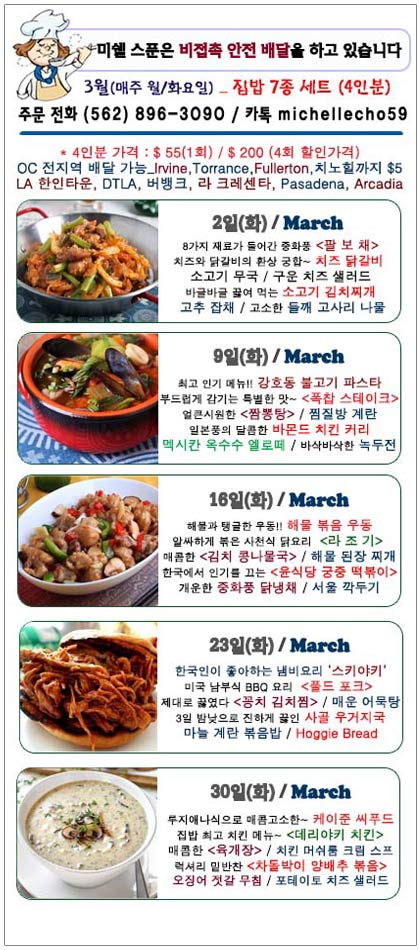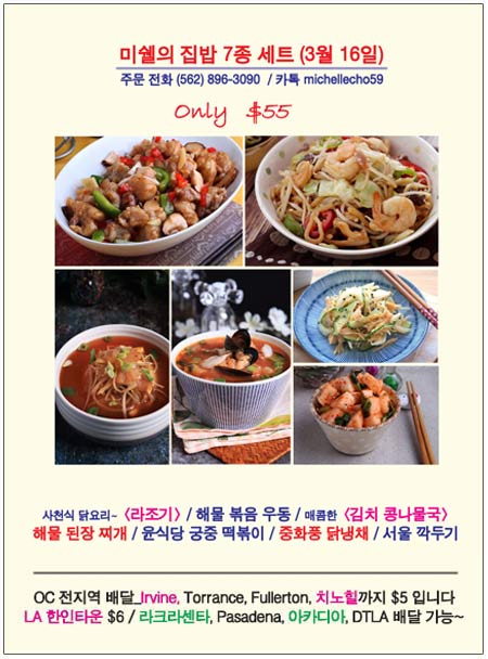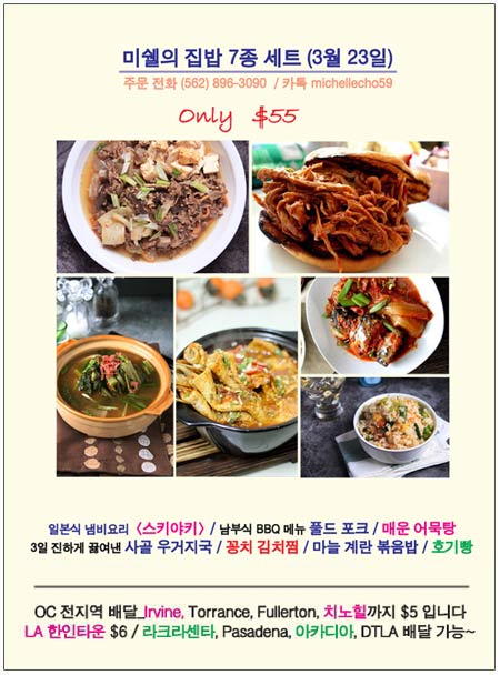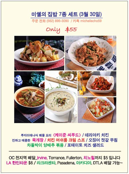 이제는 엘에이, 라크라센타, Pasadena를 비롯해 얼바인, 치노힐까지 미쉘의 명품 집밥을 즐길 수 있습니다.